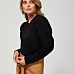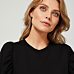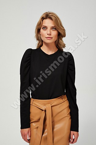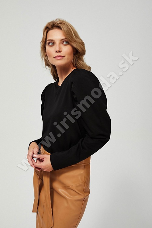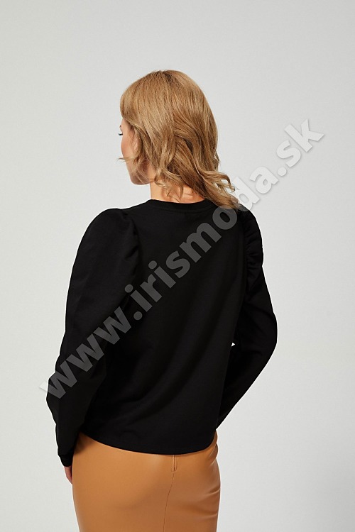 Čierna mikina s nafúknutými rukávmi. Hladký vzor. Okrúhly výstrih. Oblieka sa cez hlavu, je bez zipsu. Materiál je príjemný na dotyk . Perfektné pre elegantné štylizácie.