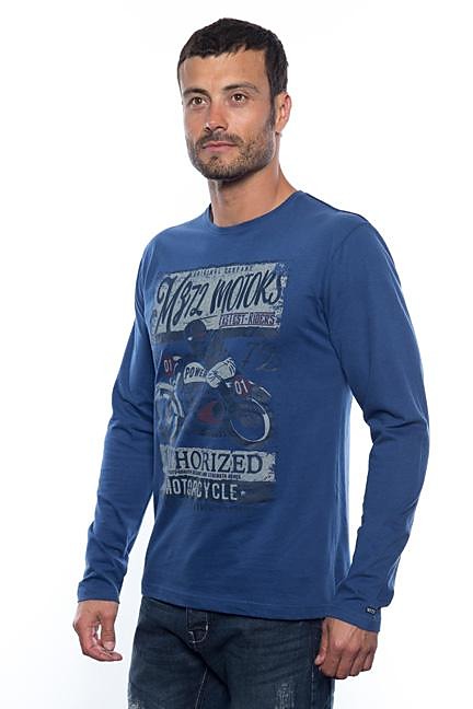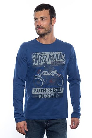 Pánske tričko s dlhým rukávom s potlačou na prsiach.