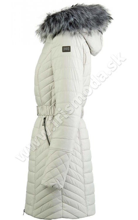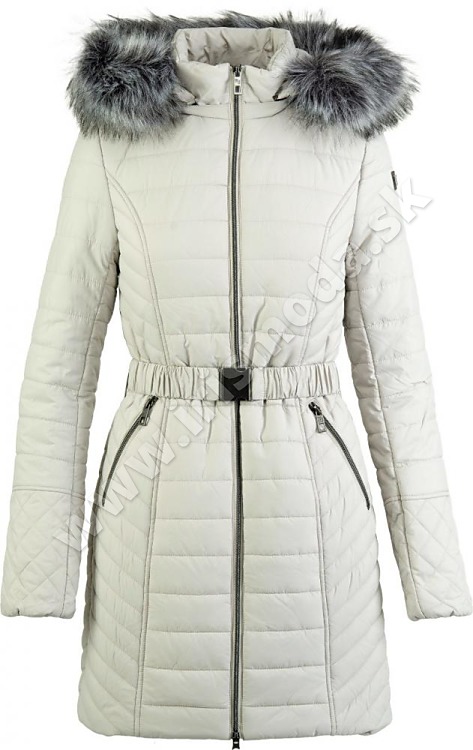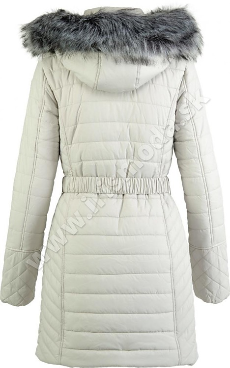 Dámsky kabát s kapucňou s umelou kožušinou cementovej farby. Kapucňa aj umelá kožusšina sú odopinateňé. Aj ked kabát neposobi robustne,poskytuje pocas chladnych dni svojej majitelke teplotny komfort, je lahký a vyznacuje sa kvalitnym spracovanim .
