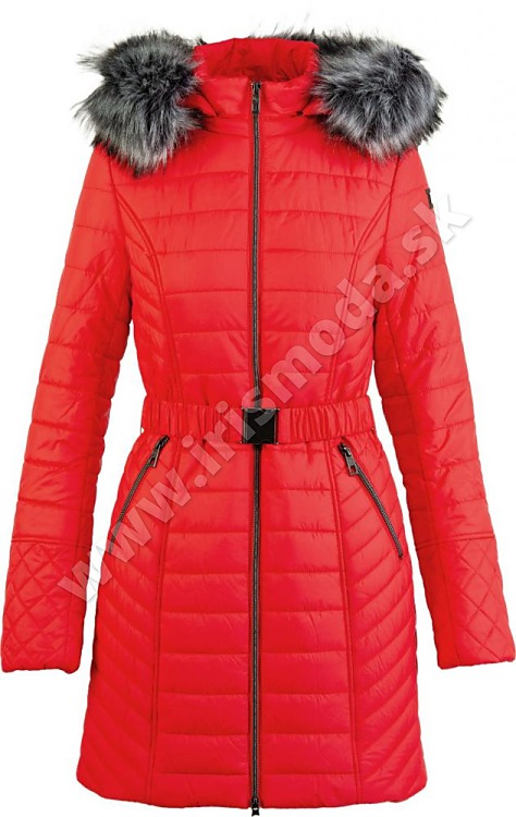 Dámsky kabát s kapucňou s umelou kožušinou koralovej farby. Kapucňa aj umelá kožusšina sú odopinateňé. Aj ked kabát neposobi robustne,poskytuje pocas chladnych dni svojej majitelke teplotny komfort, je lahký a vyznacuje sa kvalitnym spracovanim .